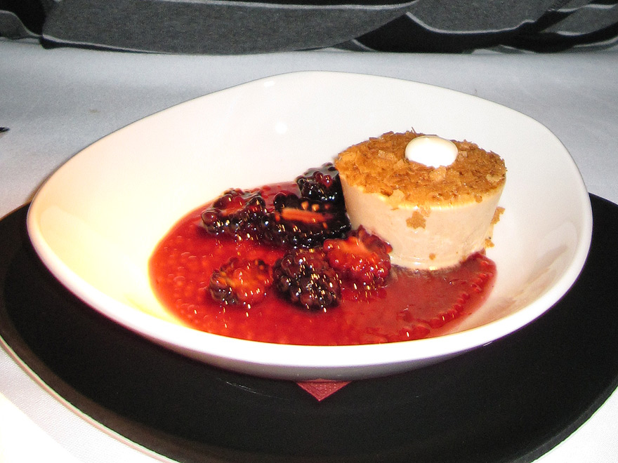 Die Hauptgänge kamen aus der Region Thailand und waren mit drei Chilischoten gekennzeichnet („Sehr scharf“) und tatsächlich, mit Chili wurde nicht gespart. Die Crevetten waren zudem auch knackig und schön frisch. Wirklich überzeugen wollte das Essen aber nicht. Zuerst war da der Reis, völlig trocken und dörr. Trotzdem war man darauf angewiesen, erstens um die Schärfte zu mildern und zweites damit man genug gegessen hat. Denn neben den paar Crevetten lagen nur noch Chilischoten, Thaibasilikum usw. im Teller – also nichts das man einfach so essen kann.