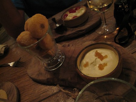 Zum zweiten Mal Salat und Ei war von meiner Seite vielleicht unglücklich gewählt aber es hat sich trotzdem gelohnt. Wiederum einfache und schöne Aromen. Das Schweinefleisch war sehr fein. Auch der Salat aus Bohnen und Sellerie war frisch und schmeckte super. So einfach, so simpel – so gut! Auf dem zweiten Teller lagen noch frittierte Schweineohren welche man in einer rassigen und gut abgeschmeckten Senfsauce dippen konnte.