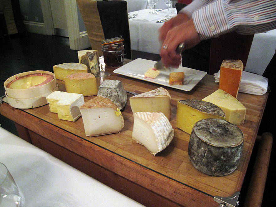 Auf Wunsch konnte man das Menü um einen weiteren Gang erweitern und sich von dem kleinen Käsewagen bedienen lassen. Die Käse waren mehrheitlich aus Frankreich und aus dem britischen Königreich. Dazu gereicht wurden diverse Cracker sowie eine selbst gemachte Marmelade.