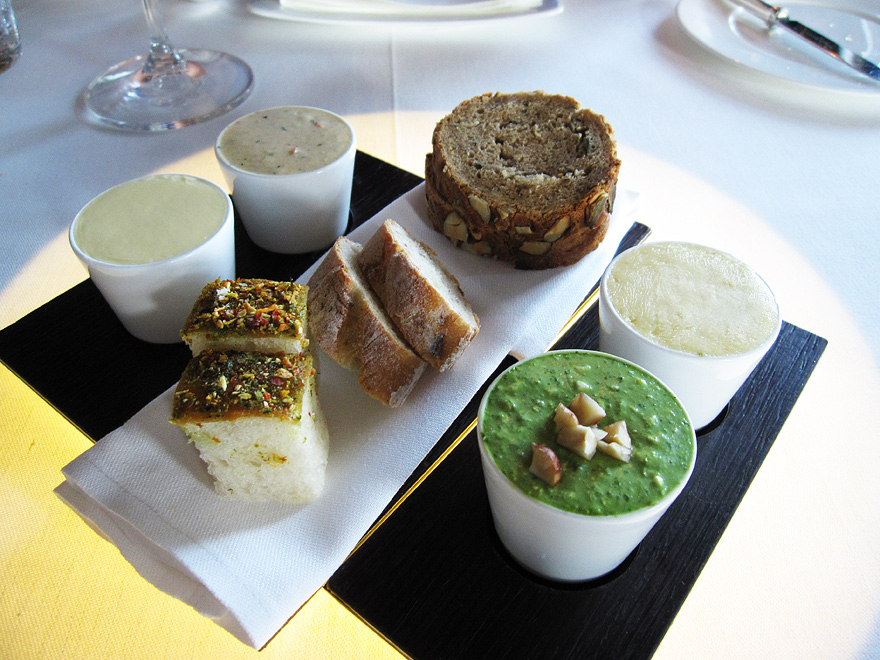 Weil… es mit Abstand die vielfältigste und zugleich beste Brotauswahl gab. Nach dem ersten Service kam man nochmals mit einer zusätzlichen Auswahl an unseren Tisch. Dazu servierte man uns süchtig machende Aufstriche. Wir hatten schon damals berichtet, dass wir uns den ganzen Abend nur davon hätten ernähren könnten.