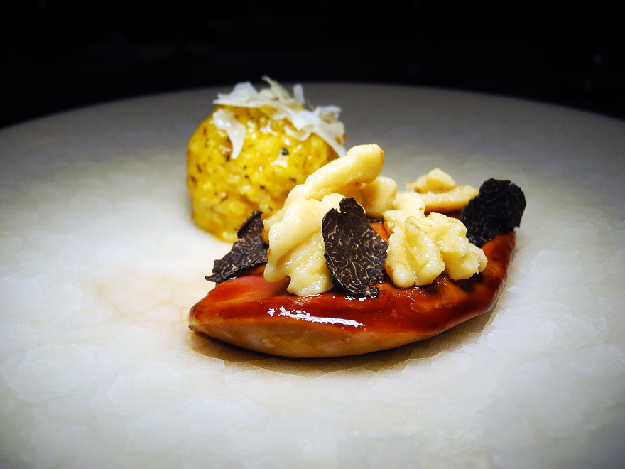Das Rebhuhn ist nicht nur perfekt medium gebraten, sondern hat auch ein charaktervolles Aroma, welches mit den restlichen Akteuren auf dem Teller kombiniert, zu Höhenflügen ansetzt. Da wären zum Beispiel die weissen Walnüsse, die nicht nur geschmacklich harmonieren, sondern auch für den zusätzlichen Crunch-Effekt sorgen. Den Glanzpunkt setzt aber das atemberaubende Brioche, dessen perfekt dosierte Trüffelaroma, im Einklang mit dem Vogel steht. Ein rundum starker Gang – genau wegen solchen Gerichten sind wir hierher gekommen.