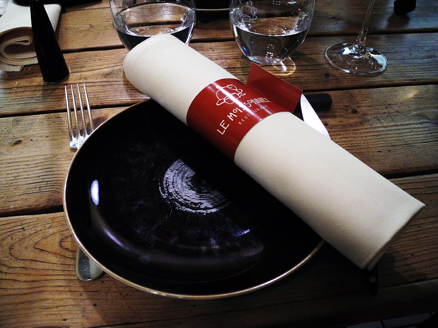 Als wüsste das Moissonnier Team von unseren Eskapaden, werden wir trotz der herrschenden Hektik, wohl empfangen. Hier ein Lächeln einer hübschen Dame, dort ein verstänndnisvolles Nicken des Chefs, weil man bei der Speiseauswahl noch etwas Zeit braucht, obwohl wir eher mit entzürrnten Blicken gerechnet haben – wir erlauben uns schliesslich, noch kurz vor 21 Uhr einzutreffen (alles schon irgendwo erlebt). Doch wie wir schnell merken, spielt dieses Restaurant in einer anderen Liga. Es demonstriert in einmaliger Art, wie ein guter Service in einem „einfachen“ Restaurant auszusehen hat.