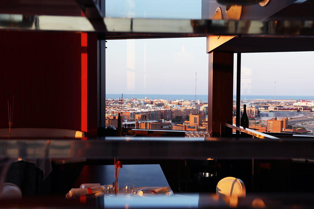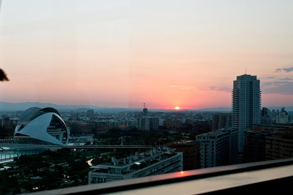 Am zweiten Abend gehen wir auf Nummer sicher und reservieren einen Tisch in einem der vier Restaurants, die hier in der Stadt mit einem Michelin Stern ausgezeichnet sind. Die Wahl fällt auf das Vertical. Das Restaurant ist auf dem obersten Stock des Confortel Aqua 4. Das Hotel selbst ist gespenstisch ausgestorben und der Weg zum Restaurant istschlecht siganlisiert. Wir finden den Eingang dann doch noch und werden von einer einmaligen Aussicht auf die modernen Gebäude der „Stadt der Künste und Wissenschaft“ belohnt.