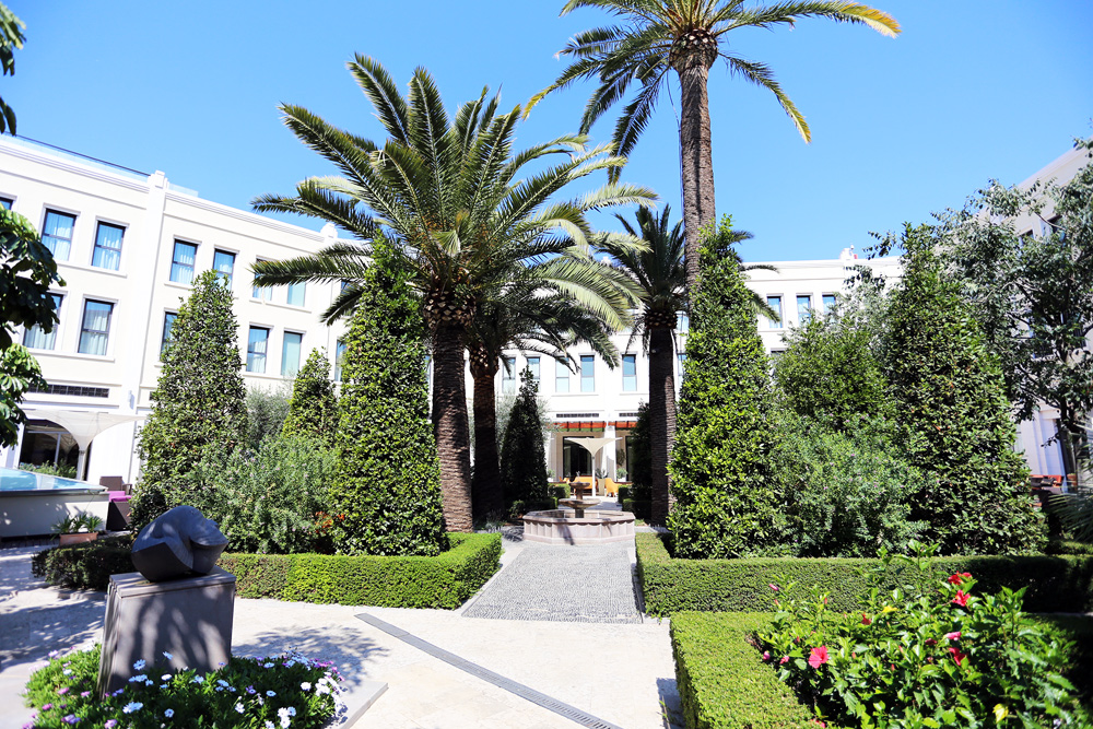 Zum Glück haben wir hier in der Stadt eine kleine Oase – unser Hotel. Das 5 Sterne Haus The Westin Valencia ist ein luxuriöses Hotel an sehr guter Lage. Die angenehm klimatisierten Räume sind dann auch ein willkommener Kontrast zum heissen Wetter und machen unseren Städtetrip um ein vielfaches angenehmer. Im gepflegten Garten mit den hohen Palmen kann man sich dann auch wunderbar zurückziehen und im Schatten einen kühlen Drink geniessen.