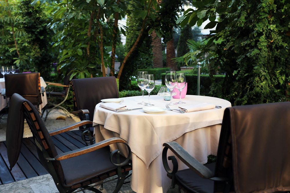 Die traumhafte Aussicht geniesst man auch von der Barterrasse. Leider werden die Drinks hier nur zögerlich serviert. Allgemein ist die Personaldecke dünn. Das Restaurant El Minarete ist gar seit einigen Jahren komplett geschlossen. Dafür steht das gehobene Restaurant Emperador den Gästen für das Mittag- und Abendessen zur Verfügung. Das kulinarische Angebot wirkt aber sehr unmotiviert. Eine entsprechende Streichung aus dem Guide Michelin ist überfällig.