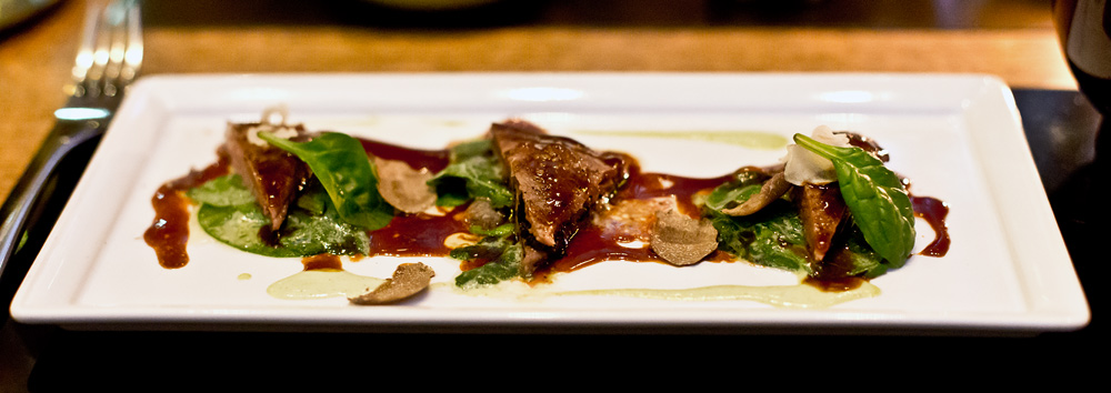 Schon der erste Bissen lässt unsere Pupillen vergrössern. Die Foie gras schmilzt förmlich auf der Zunge, gibt den himmlischen Geschmack frei und wird vom intensiven Aal flankiert. Eine atemberaubende Marriage. Daumen hoch!