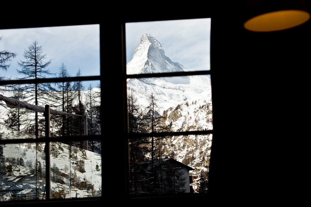 Vom Frühstückstisch aus haben wir einen guten Blick auf das stolze Matterhorn, welches von einem stahlblauen Himmel umgeben ist. Dieses Prachtwetter zieht uns im Eiltempo auf die Pisten. Im Skiraum, der traumhaft nach Kirschen duftet, hat jedes Zimmer seinen eigenen Spind, in dem die Schuhe und Skis bequem verstaut werden. Anschliessend wartet gegenüber dem Hotel der Lift. Dieser transportiert die Gäste 50 Meter in die Tiefe und kommt wenige Schritte vor der Sunnegga-Bahn zum Stehen. Die Zahnradbahn bringt die Wintersportler dann auf einer rasanten Fahrt innert wenigen Minuten direkt ins Skigebiet.