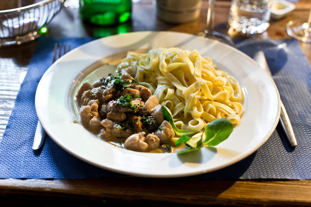 Kalbsmilken an Morchelrahmsauce mit hausgemachten Nudeln