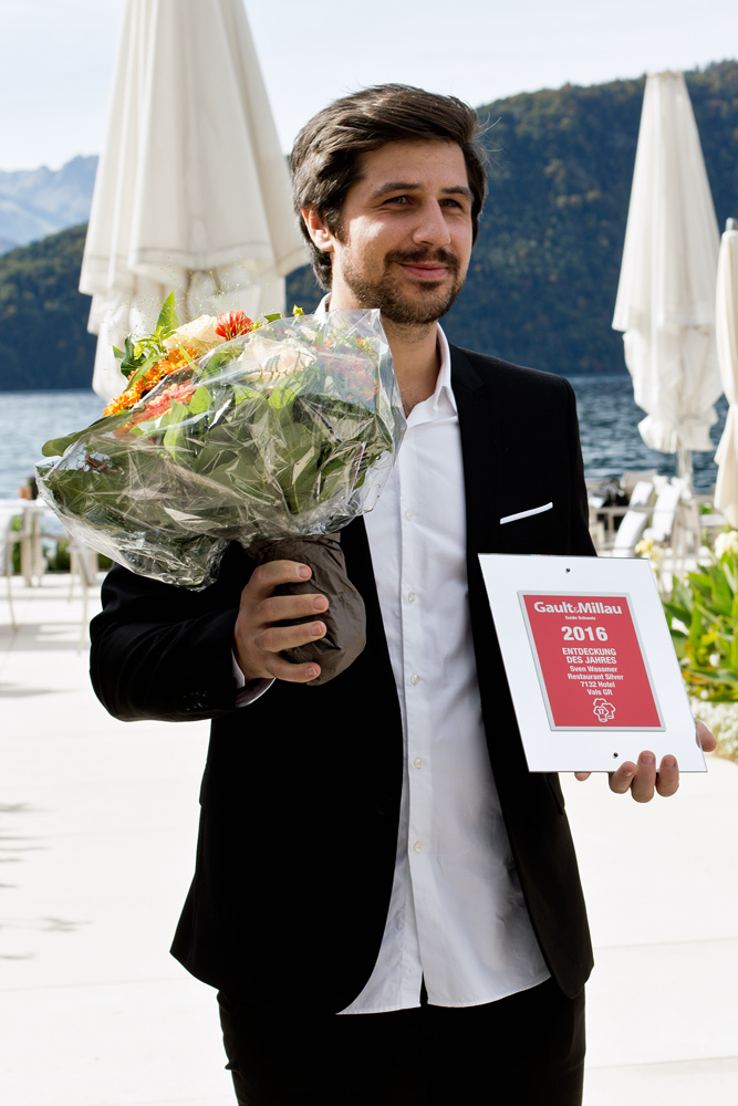 „Entdeckung des Jahres“ wird in diesem Jahr Sven Wassmer – der ehemalige Sous Chef von Nenad. Sven hat im letzten Dezember das Restaurant Silver im 7132 Hotel in Vals übernommen und die Tester auf Anhieb begeistert. Sie nennen ihn das grösste Talent der Schweizer Kochszene. Der Neueinsteiger startet mit stolzen 17 Punkten – so hoch ist noch nie jemand als Entdeckung in den Gault-Millau eingestiegen. Die Westschweizer-Entdeckung ist Alain Montigny vom Restaurant Chalet RoyAlp in Villars-sur-Ollon. Er startet mit 15 Punkten.