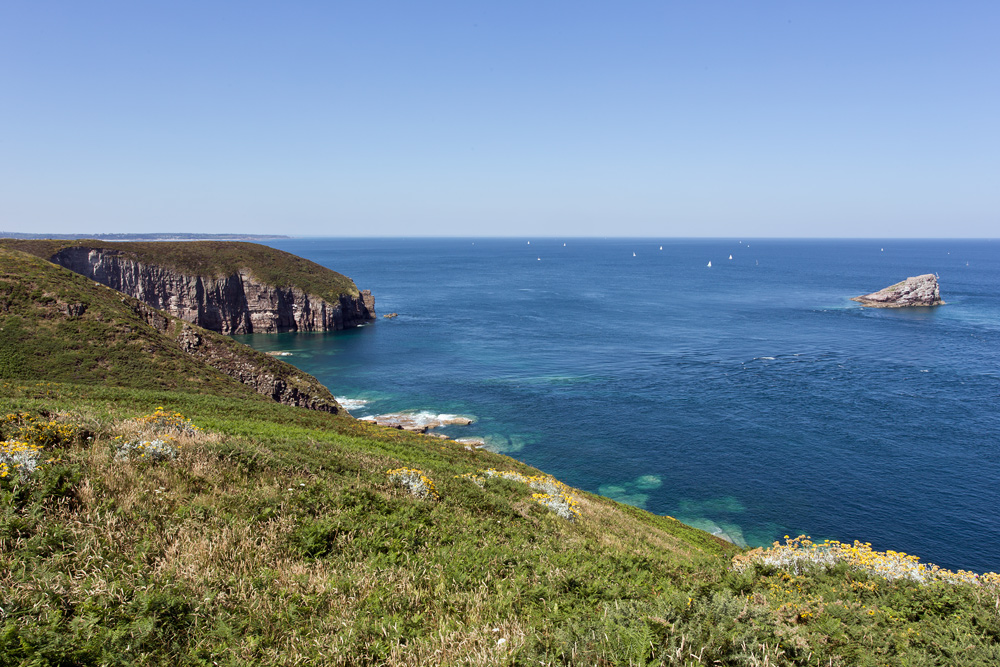 Den zweiten Halt machen wir am Cap Fréhel. Die bis zu 70 Meter hohen Klippen bieten einen fantastischen Blick aufs Meer. Hier kann man sich hinsetzen, die angenehme Sommerbrise geniessen und sich von der visuellen Naturpracht begeistern lassen.