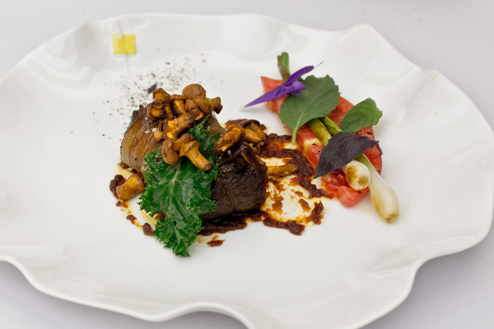 Jedes Gericht hat es nach einem solch kulinarischen Feuerwerk schwer um das Niveau zu halten. Der Saibling löst die Aufgabe aber mit Bravour. Wir verlieben uns schon beim ersten Bissen in das saftige Filet mit seiner erfrischenden Zitrusnote. Begleitet wird es von Lauchzwiebeln die überraschend gut zum Süsswasserfisch passen. Ein weiteres Highlight ist die zauberhafte und äusserst elegante Safransauce. Sie komplettiert dieses hervorragende Gericht.