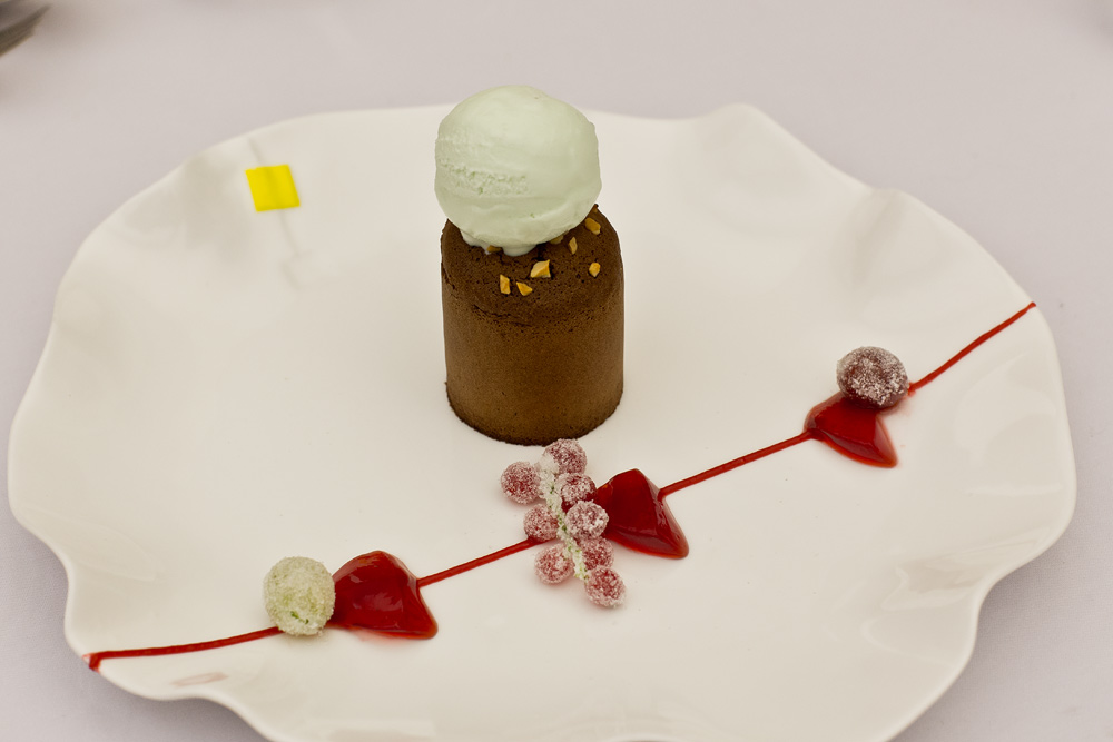 Das erste Dessert ist ein klassisches Moelleux mit flüssigem Schokoladenherz. Perfekt umgesetzt, aber nicht besser als wir es bereits in vielen Restaurants zuvor serviert bekommen haben. Absolut fantastisch ist dafür das Minz-Glacé welches es mit seiner Eleganz in unsere Top-10 der besten Eissorten schafft.