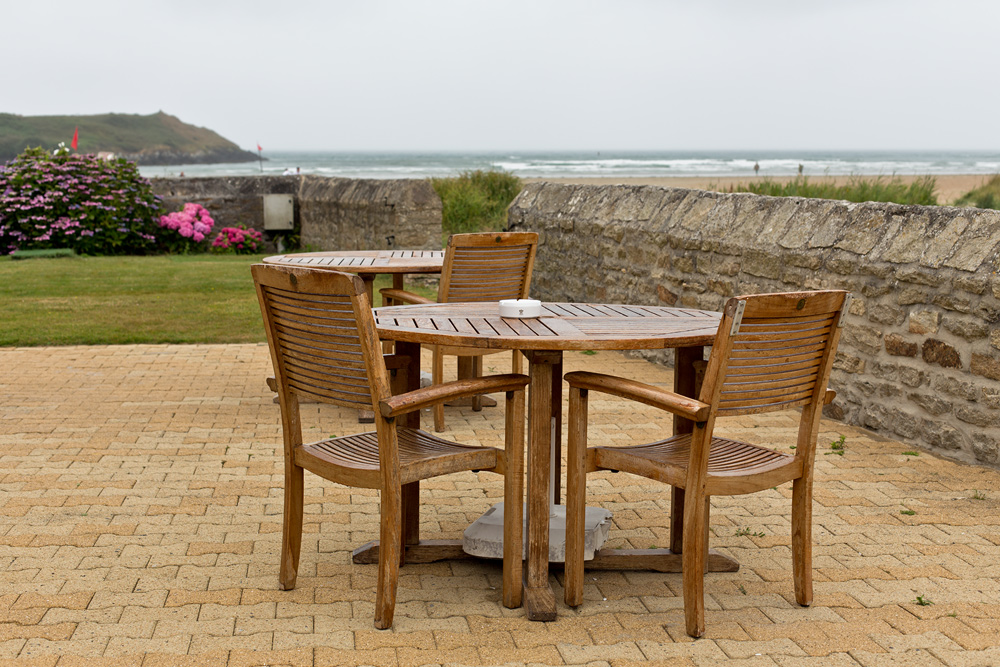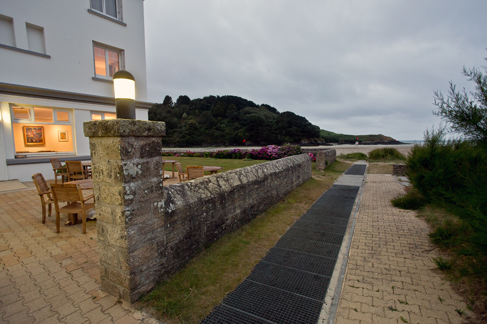 Nach diesem lehrreichen Ausflug und einer unterirdisch schlechten Verpflegung im Museums-Restaurant, geht es weiter in Richtung Süden. Die nächsten Nächte verbringen wir in Plonevez-Porzay im Hôtel de la Plage. Der Name verspricht nicht zu viel. Das 4-Sterne-Hotel liegt tatsächlich direkt am langen Sandstrand. Ausser dem rauschen der Wellen und den Rufen der Möwen ist an diesem idyllischen Ort nichts zu hören. Schon von Weitem sehen wir die blaue Flagge von Relais & Châteaux stolz im Wind wehen. Das weisse Haus mit seinem kleinen Türmchen gehört der Hotel-Vereinigung seit vielen Jahren an. Gastgeber des Kleinods sind Jean-Millau Le Coz und seiner Frau Anne.