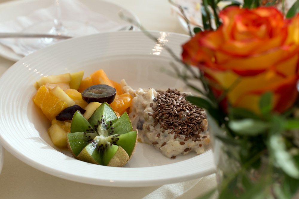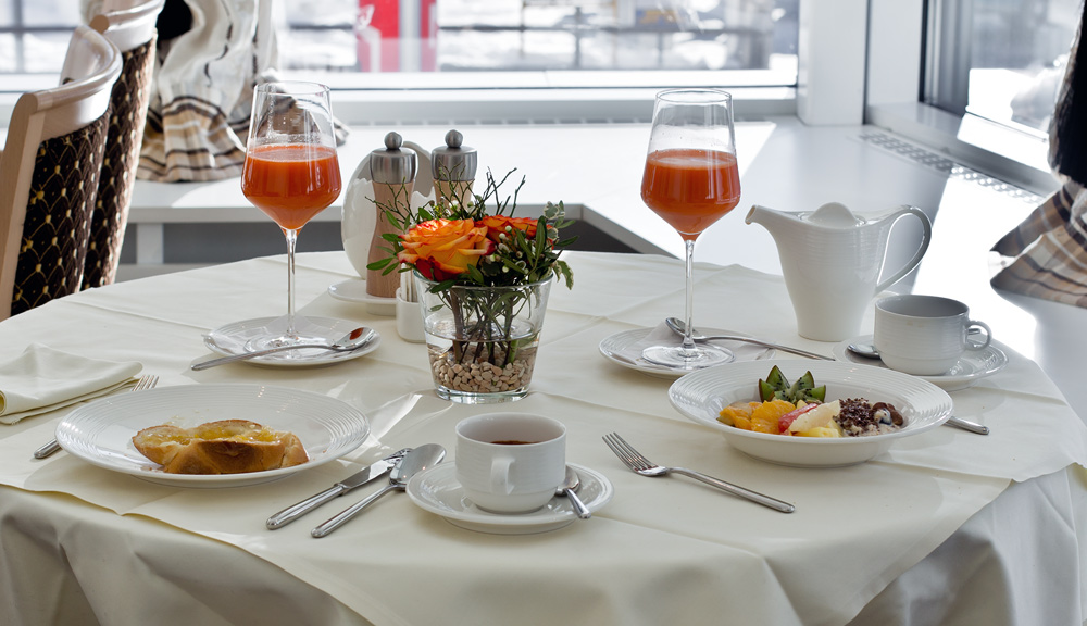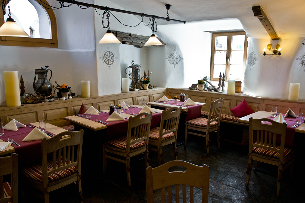 Panorama – Hier wird jeden Morgen ein umfangreiches Frühstück angeboten. Es gibt sogar eine eigene Karte mit klassischen und speziellen Eierspeisen. Am Abend wird hier das à la carte Halbpension-Menü serviert. Das Lokal steht auch für externe Gäste offen.