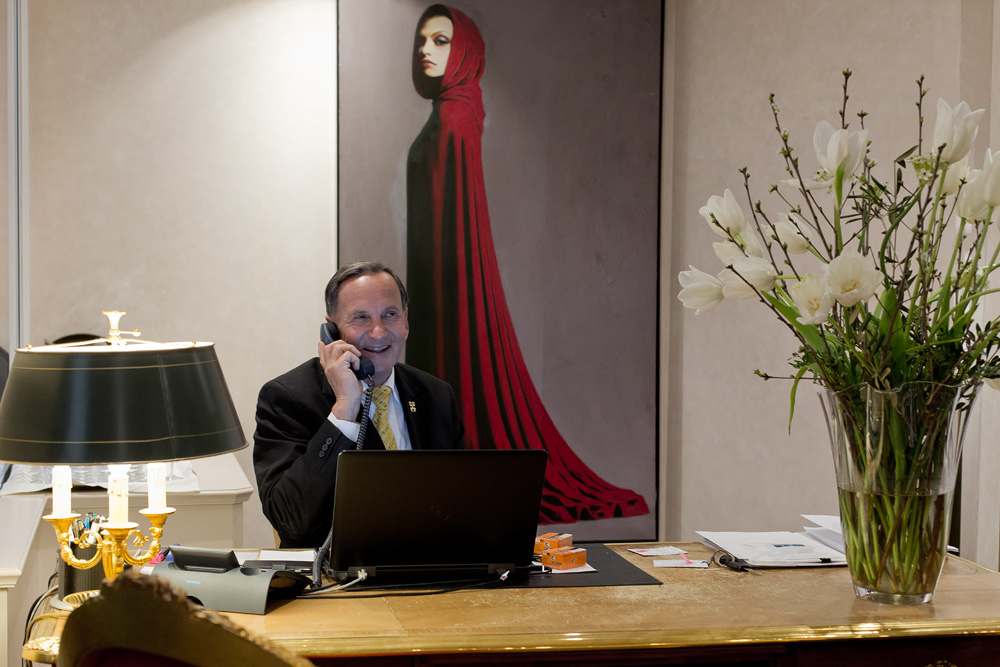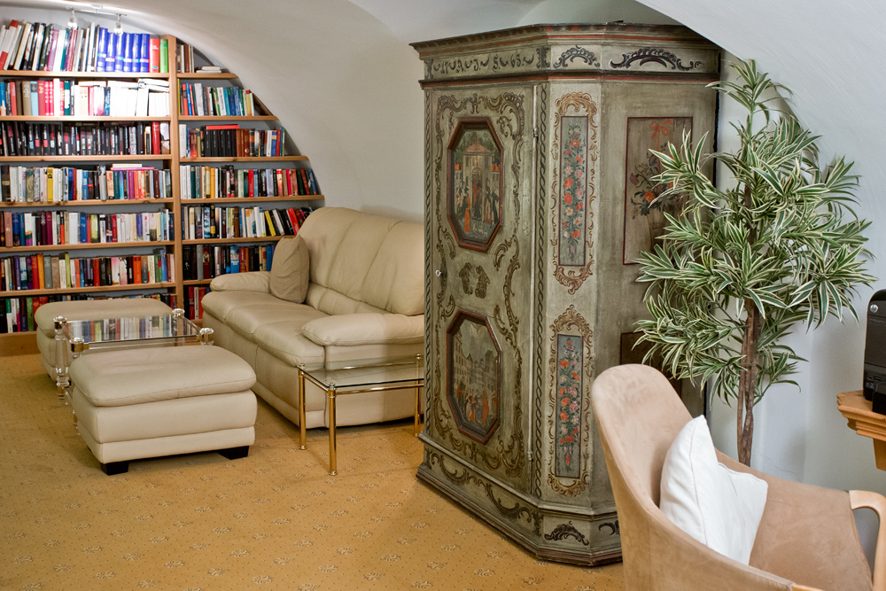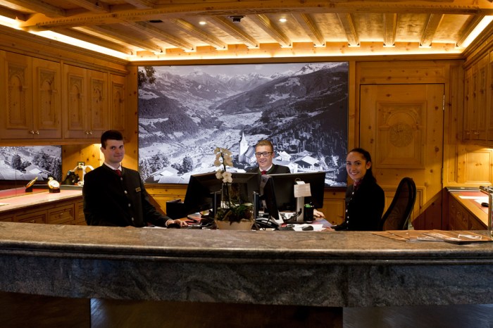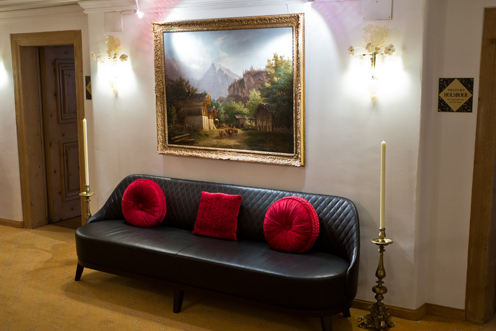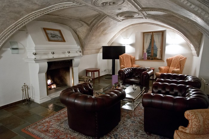 Gleich beim Eingang hat Concierge Bruno Haag seinen Platz. Er organisiert für die Gäste Transfers und hat gute Tipps wo man ausserhalb des Hotels gut essen kann. Die Hotel-Bar befindet sich rechts vom Concierge-Pult. Die Bar verbindet das klassische Design mit modernen Elementen wie dem auffallenden Cheminée. Rauchen darf man hier nicht. Dafür steht im ersten Stock ein kleines Fumoir zur Verfügung. Auf Wunsch wird hier ein schönes Feuer entfacht. Es ist ein sehr gemütlicher Ort um bei Zigarre und Drink den Tag auszuläuten.