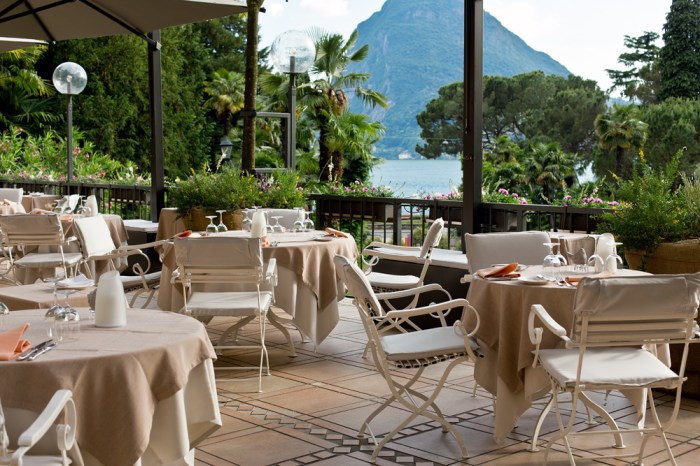 Le Relais – Bei schönem Wetter geniessen die Gäste auf der lauschigen Terrasse den malerischen Blick auf den See und den San Salvatore. Küchenchef Christian Bertogna serviert eine mediterrane Küche, die vom Gault-Millau mit 15 Punkten ausgezeichnet wird. Begleitet wird das Dinner von den wunderschönen Klängen des Pianisten.
