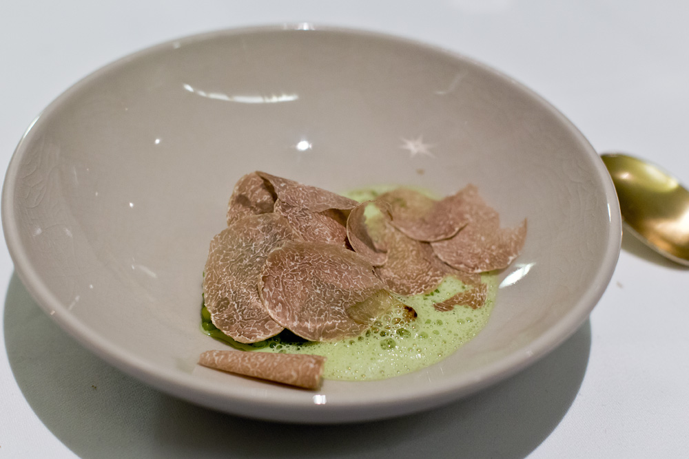 Weisser Trüffel – Mascarpone Gerste, Lauch, Muskatblüten Essig (6/10)