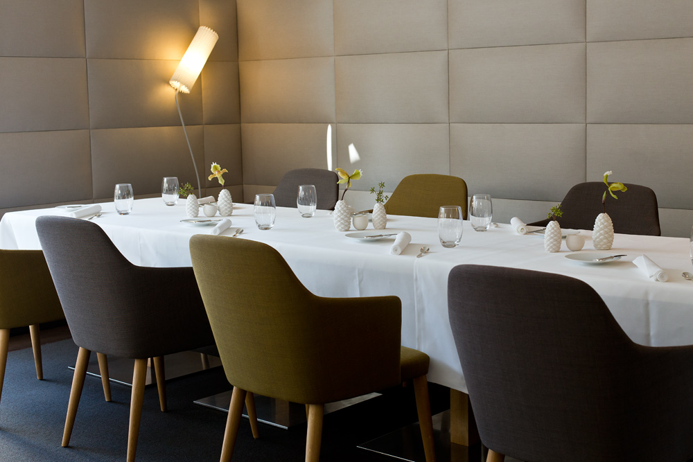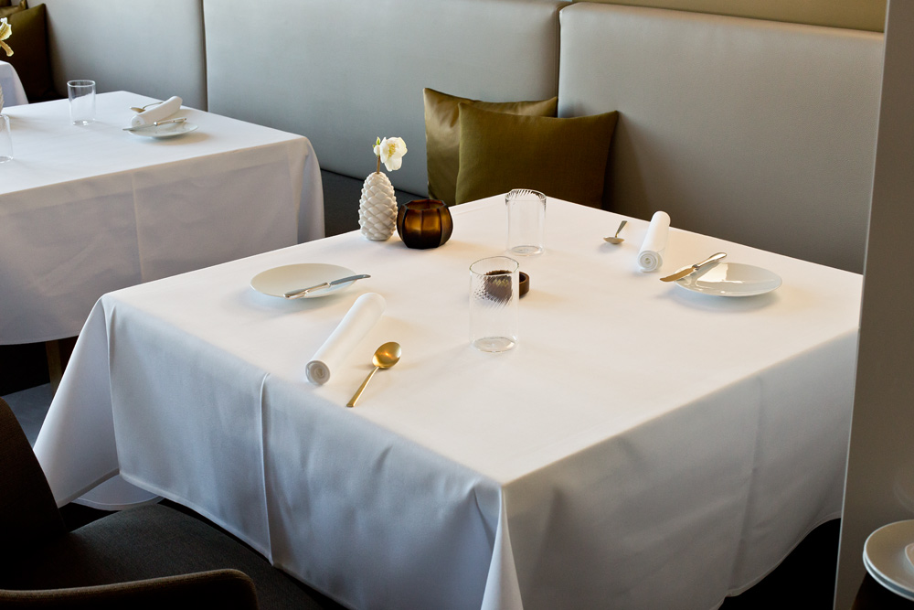 Der letzte Besuch im 2012 ist immer noch in bester Erinnerung. Tanja Grandits begeisterte uns damals mit nicht alltäglichen Geschmackskombinationen mit viel Power. Wir hoffen sehr, dass wir das Restaurant in ein paar Stunden wieder so begeistert verlassen werden wie damals. Wir betreten das Lokal und werden von einem elegant gekleideten Service-Team begrüsst. Das neue Interieur gefällt uns ausgesprochen gut. Ohne die Vorhänge wirkt es leichter und dank dem dezenten gelb-goldenen Touch erzeugt man eine schöne Eleganz.