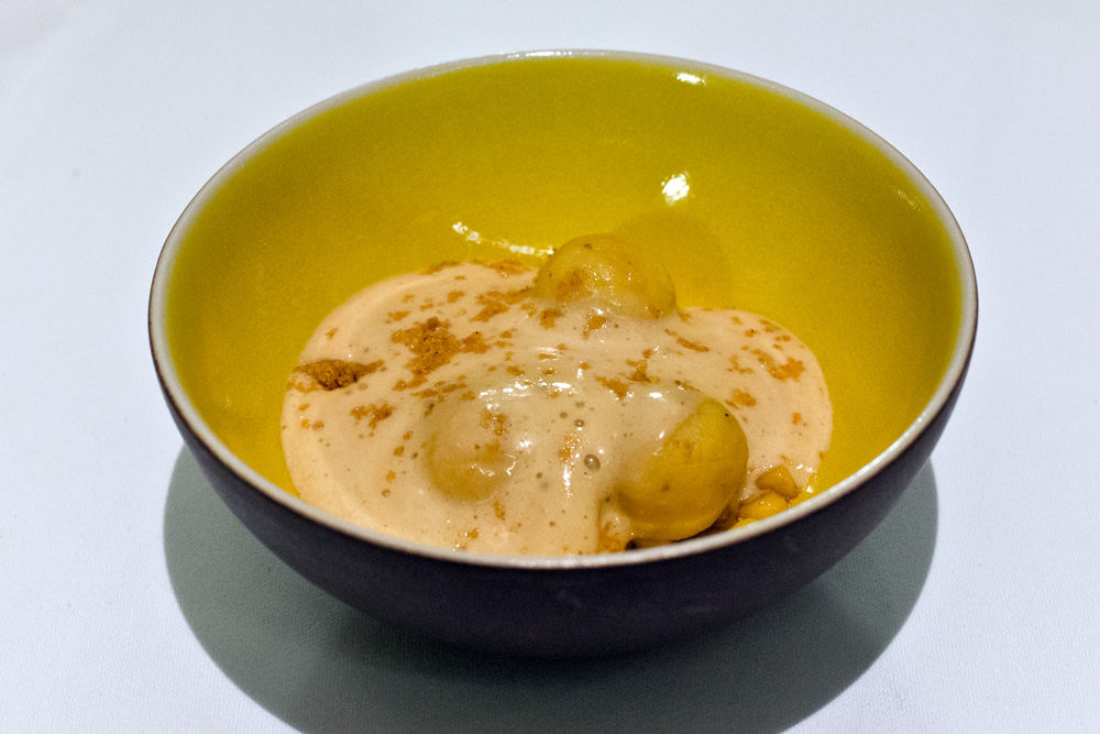 Sellerie – Kaffee Sorbet, Olivenöl Mousse, Karamell Spekulatius Krokant (9/10)
