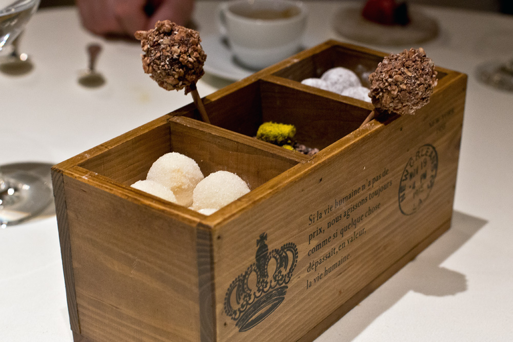Die Pralinen (Banane und Passionsfrucht) sind hervorragend. Auch sehr gut das Kirsch Panna cotta welches für einen Süss-Sauren Abschluss sorgt.