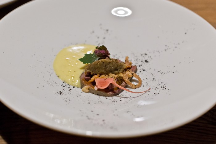 Am Ende löst Gregor auf. Die Leber-Crème stammt nicht vom Kalb sondern vom Hirsch. Die gebackenen Bällchen sind aus Forellen-Rogen.