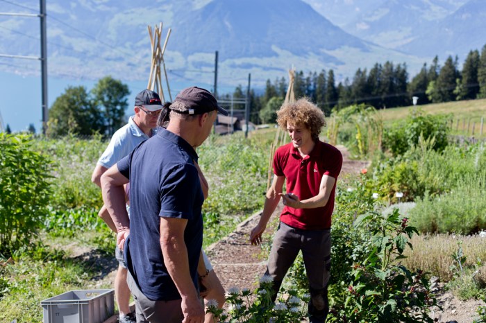 Vor zwei Jahren hat Gregor den gleichaltrigen Spitzenkoch Benjamin Just kennengelernt. Der Norddeutsche arbeitete damals im Prisma im Parkhotel Vitznau. Als Benjamin den Kräutergarten sah und gleichzeitig von Gregors Philosophie erfahren hat, war er sofort Feuer und Flamme. Denn Benjamin hegte schon lange den Wunsch seine Küche mit den eigenen Kräutern zu veredeln. So macht er seiner Frau die schöne Aussicht schmackhaft und zog mit ihr und den beiden Kindern auf den Zentralschweizer Berg.