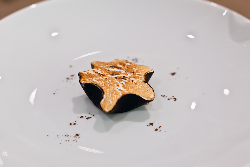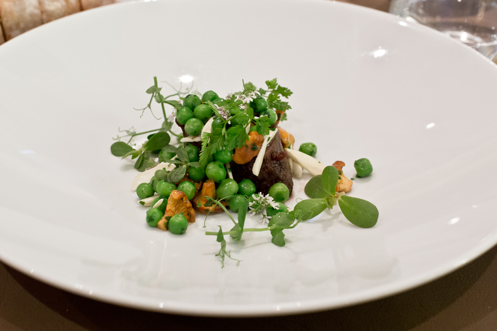 Danach folgt der Auftritt von Bras‘ Signature Dish: dem Gargouillou. Das berühmte Gericht ist ein fixer Bestandteil des Menüs und besteht je nach Saison zwischen 60 und 70 frische Zutaten. Am Tisch wird noch ein weisses Elixier darüber geträufelt. Danach tauchen wir die Gabel ehrfürchtig in das liebevoll arrangierte Durcheinander und staunen über die genialen Aromen im Mund. Gabel für Gabel geniessen wir mit geschlossenen Augen. Einfach himmlisch. Das Grossartige daran ist die Tatsache, dass man diesen Teller unzählige Male essen könnte und dabei nie das gleiche Ergebnis bekommt. Denn je nachdem welche Zutaten auf der Gabel landen schmeckt es mal bitter, mal ätherisch, mal rassig oder süss. Wahrlich ein Meisterwerk.