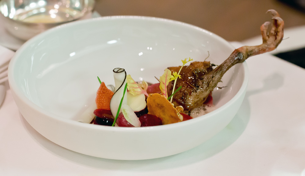 Roasted partridge breast, steamed truffle brioche, confit egg yolk, new season white walnuts, fumet of Vin Jaune [8/10]
