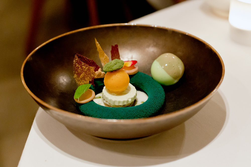 Das Rebhuhn ist nicht nur perfekt medium gebraten, sondern hat auch ein charaktervolles Aroma, welches mit den restlichen Akteuren auf dem Teller kombiniert, zu Höhenflügen ansetzt. Da wären zum Beispiel die weissen Walnüsse, die nicht nur geschmacklich harmonieren, sondern auch für den zusätzlichen Crunch-Effekt sorgen. Den Glanzpunkt setzt aber das atemberaubende Brioche, dessen perfekt dosierte Trüffelaroma, im Einklang mit dem Vogel steht. Ein rundum starker Gang – genau wegen solchen Gerichten sind wir hierher gekommen.
