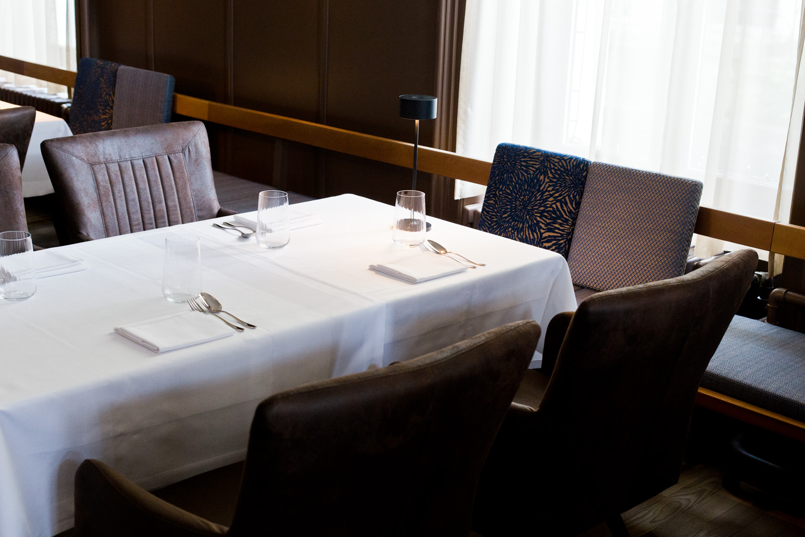 Das Herzstück des Hotels – zumindest für uns Gourmets – ist das mit zwei Michelin-Sternen ausgezeichnete La Grand’Vigne von Chef Nicolas Masse. Es ist schön, heute wieder Gast sein zu dürfen. Seit dem letzten Besuch wurde das Restaurant modernisiert. Ein neuer Teppich, dunkles Blau, bequeme Stühle und neue Tische, deren Platten leider etwas wackeln, bilden einen sehr gemütlichen Ort. Das Service-Team macht von Beginn weg einen tollen Job. Die Speiseauswahl gestaltet sich einfach, denn es gibt lediglich zu entscheiden ob man das Überraschungsmenü in 5 oder 7 Gängen bestellen möchte. Unsere Wahl fällt selbstverständlich auf letztere Option.