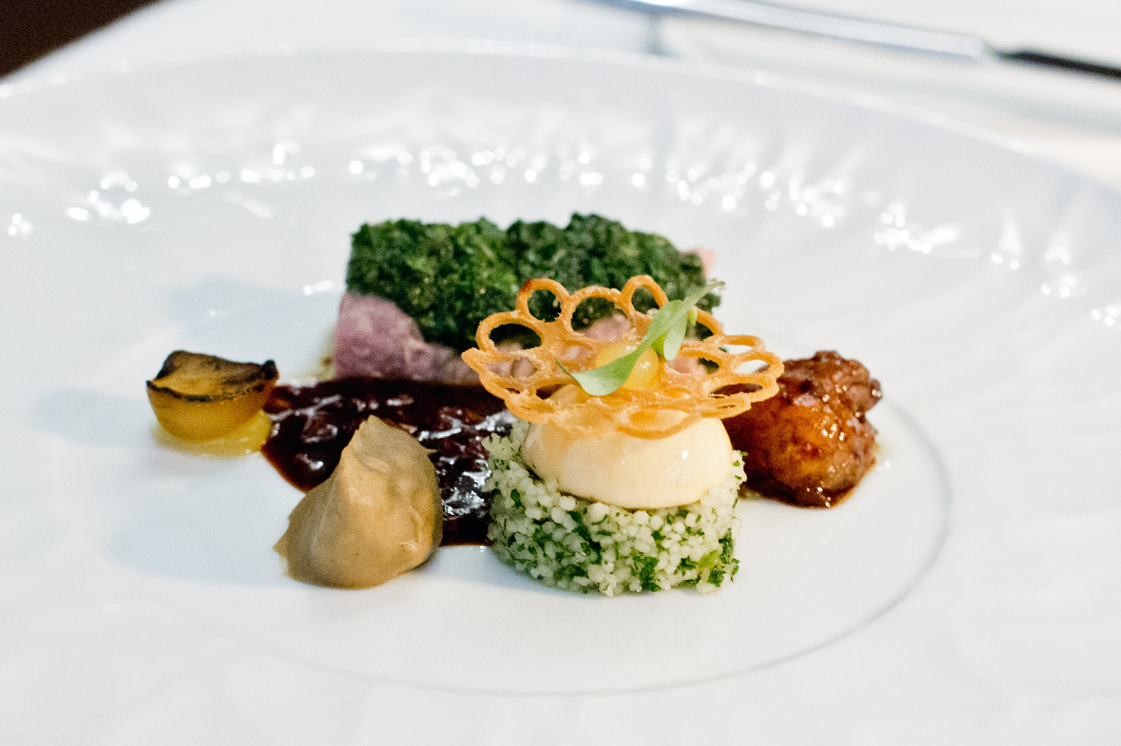 Die pochierten Austern (9/10) werden von Peperoni und Pimento in verschiedenen Konsistenzen begleitet. Das Resultat: ein extrem spannender und langanhaltender Goût und somit eines der besten Austern-Gerichte die uns jemals serviert wurden. Dass man auch richtig gute Pasta (8/10) zubereiten kann, demonstriert man uns im Anschluss. Die kleinen Ravioli, gefüllt mit getrüffeltem Spinat und Wurzelgemüse, liegen in einem warmen Sud der herzlich duftet und himmlisch schmeckt.