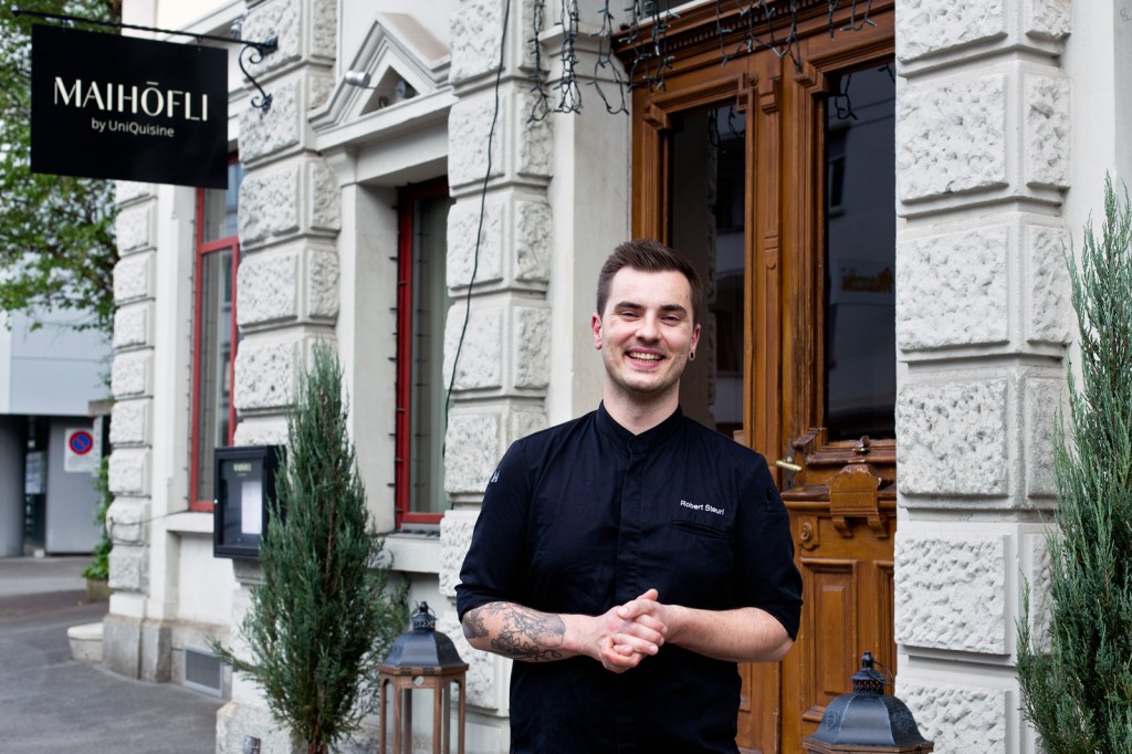 Luzern galt lange Zeit als Fine-Dining-Wüste und hatte über zehn Jahre kein einziges Sterne-Restaurant. Zum Glück hat sich dies in den letzten Jahren geändert. So zeichnet der Guide Michelin aktuell in der Stadt zwei Adressen mit je einem Macaron aus: das Lucide im KKL und das grossartige Colonnade im kürzlich eröffneten Mandarin Oriental. Bald könnte ein dritter Stern aufgehen. Denn seit ein paar Monaten macht Robert Steuri im Maihöfli by UniQuisine von sich Reden. Der ursprünglich aus Frankfurt stammende Chef, kochte die letzten Jahre in Grindelwald. Dort hat er auch die beiden Inhaber des UniQuisine Atelier in Stansstaad kennengelernt. Die Drei haben sich auf Anhieb super verstanden und beschlossen in Luzern das leerstehende Maihöfli zu übernehmen und als Maihöfli by UniQuisine zu betreiben.