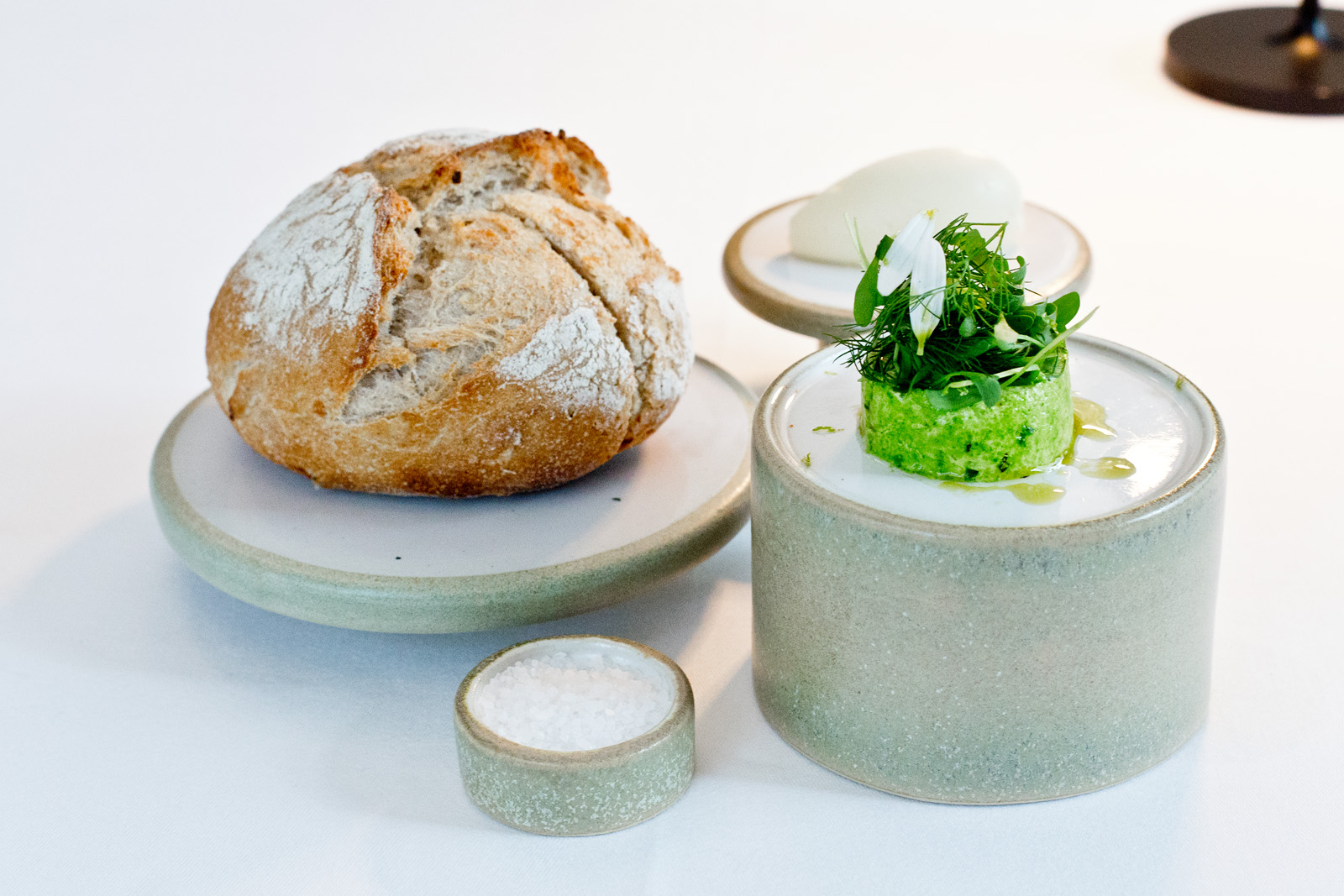 Danach wird die erste von vier verschiedenen Brotsorten serviert. Es ist ein wundervolles Sauerteigbrot mit einer knusprigen Kruste. Später im Menü werden noch drei weitere Sorten folgen (inklusive einem grossartigen Brioche mit Speck!). Begleitet wird das Gebäck von feinstem Olivenöl und einer unerwartet guten Iberischem-Schinken-Butter.