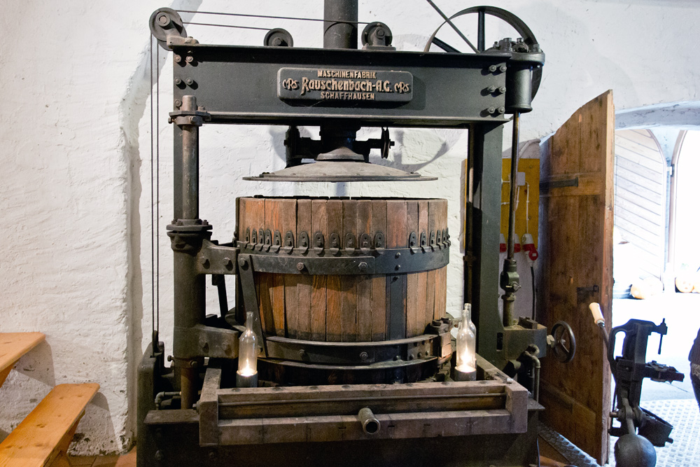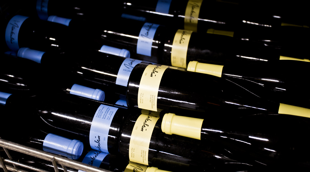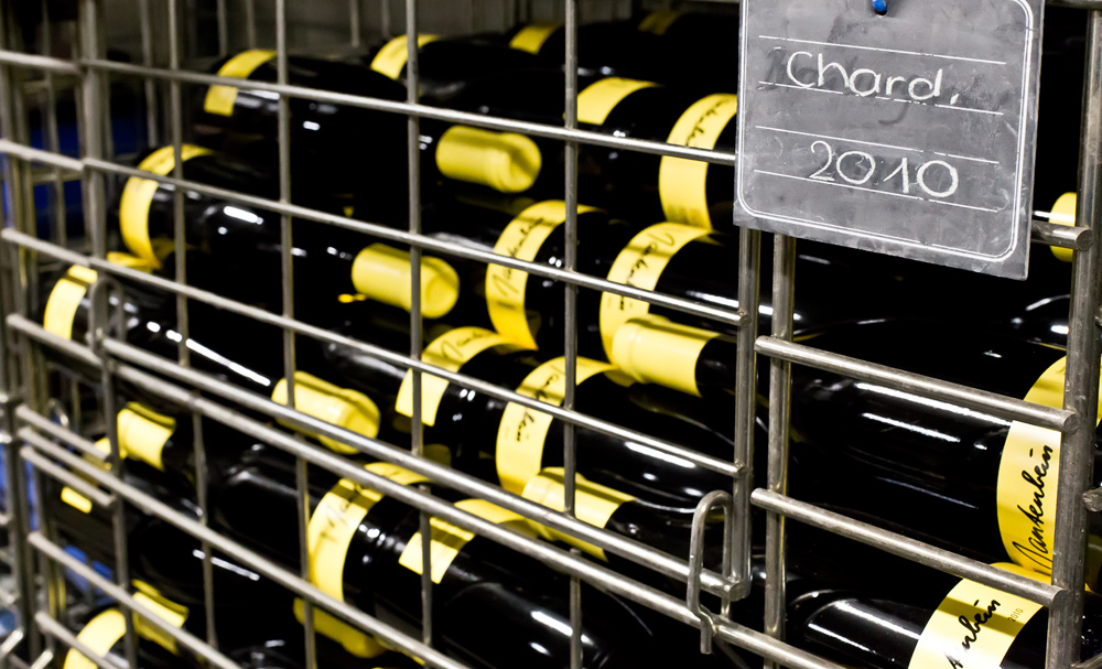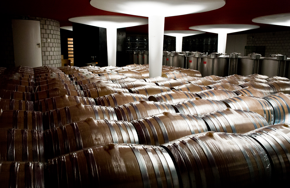 Nach dem Gespräche über seine bisherige Laufbahn, machen wir uns mit dem Lift auf den Weg in den Weinkeller. Unten vor der Tür angekommen fragt uns Gabriel ob wir bereit seien. Ohne die logische Antwort abzuwarten, tippt er den geheimen Code im Sicherheitssystem ein und lässt uns sein Heiligtum betreten. Vor unseren Augen offenbart sich ein wahrer Schatz mit hunderten schön gestapelten Holzkisten aus dem Bordeaux. Es ist unglaublich, sowohl von der Menge als auch von der Qualität. Wir finden hier unten alles. Von der ganz kleinen Flasche bis zum 6 Liter Petrus in Originalholzkiste. Sogar ein 47er Cheval Blanc versteckt sich hier unten. Daneben unzählige Heitz Martha’s Vineyard, Penfold’s Grange, diverse Schweizer Erzeugnisse, Hektoliterweise Bordeaux und vieles mehr. Wir könnten hier unten noch Stunden verbringen doch der päpstliche Bordeauxbauch knurrt. Ein Blick auf die Uhr offenbart, dass bereits Zeit fürs Mittagessen ist. René Gabriel ist ein bodenständiger, offener Mensch, ein begnadeter Rhetoriker und eine humorvolle Persönlichkeit. Durch das spannende Gespräch verging der Morgen wie im Fluge.