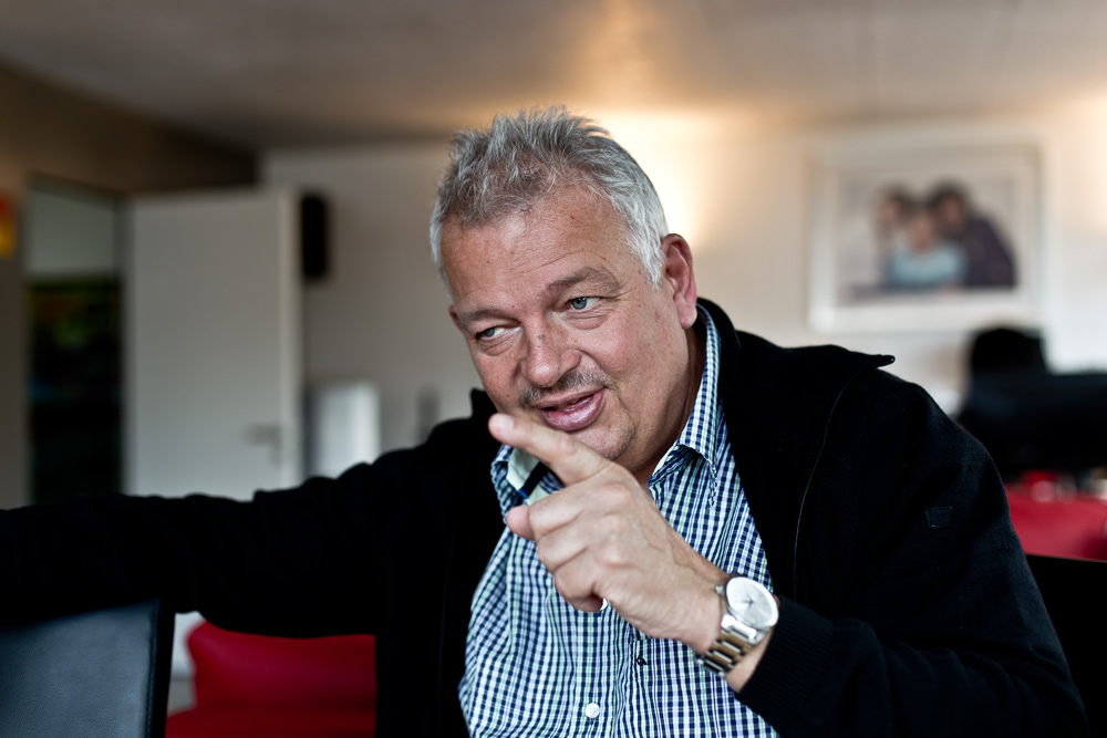 Wir drücken auf die Klingel und kurz darauf tritt der so genannte Weinpapst aus der Eingangstür und begrüsst uns freundlich. Schon nach der Frage, ob wir zuerst in der Wohnung einen Kaffee trinken oder direkt in den Weinkeller möchten, sind wir sicher, dass es eine spannende aber auch sehr unterhaltsame Verabredung werden wird. Da die Kirchenglocke erst gerade zehn Mal geschlagen hat, entscheiden wir uns für den Kaffee und lassen den Weinkeller noch etwas warten. So führt uns René Gabriel in sein chic eingerichtetes Wohnzimmer das auch gleich als Büro dient. Findet er Zeit, spielt er auch gerne ein paar Runden am nostalgischen Flipper Kasten der ebenfalls hier steht. René nimmt auf seinem Ledersessel Platz. Hinter ihm hängt ein grosses Bild von seiner Frau und den beiden erwachsenen Kindern.