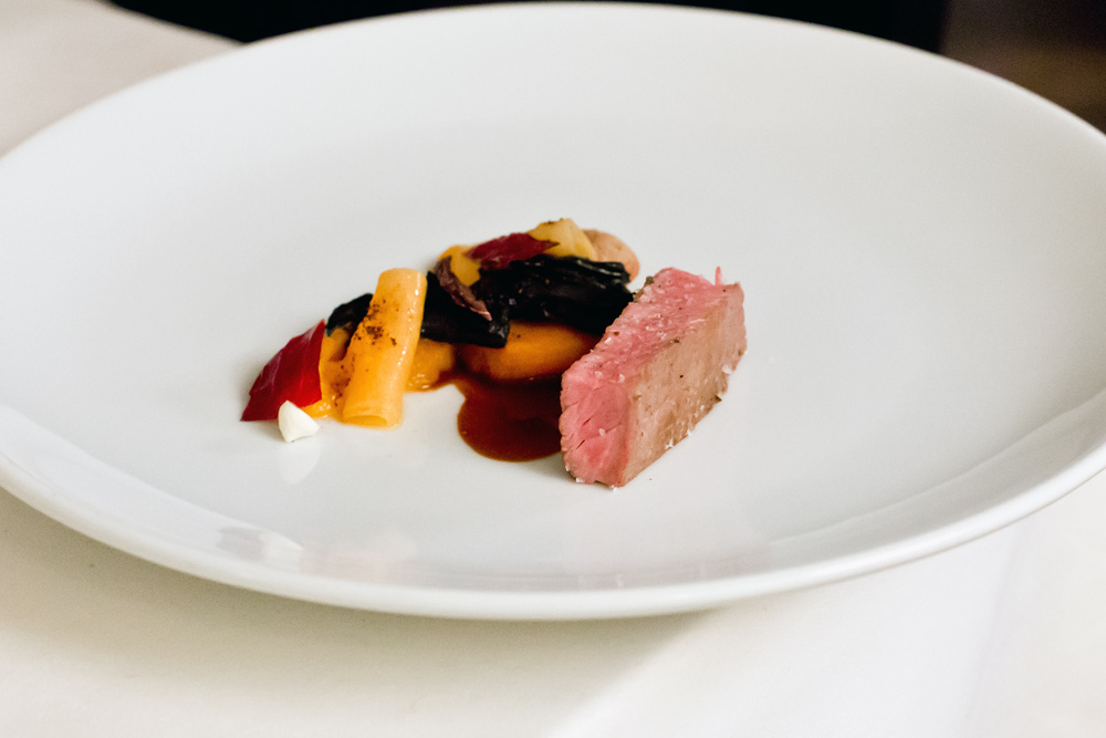 Ein überzeugender Hauptgang schliesst die salzigen Gerichte ab. Das zarte Rind wird begleitet von Pilzen, Kürbis und Passionsfrucht, diese sorgt für einen süss-sauren Kontrast. Ein sehr spannender und harmonischer Gang, der wiederum mit einem guten Jus abgerundet wird.