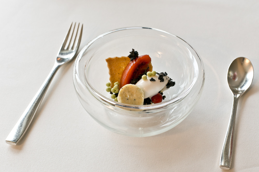 Gleich nachdem unsere Bestellung in der Küche verschwindet, wird das erste Amuse Bouche serviert: