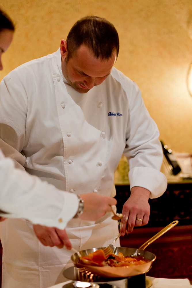 Dass Martin auch Geschmack auf den Teller bringen kann, hat er bei einzelnen Gerichten demonstriert. Die Foie Gras Kompositon war intelligent und geschmacklich sehr interessant. Auch die Taube und drei, vier andere Gerichte haben uns richtig gut gefallen. So sind wir überzeugt, dass er durch eine Reduktion seines Menüs viel mehr herausholen könnte. Davon hätten am Schluss alle mehr. Martin, weil er nicht mehr diese Flut an Teller schicken müsste (und dadurch auch die Optik näher an seine Internetbilder führen könnte), die Servicebrigade, die sich mehr Zeit für die Gäste nehmen könnte und am Ende die Gäste, die von besser ausbalancierten, auf den Geschmack fokussierten Gerichten sowie einem aufmerksameren Service profitieren würden.