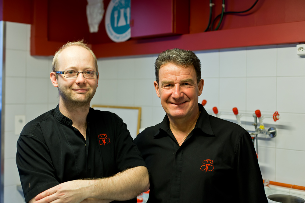 Für die Demonstration haben sich über die Hälfte der heutigen Gäste angemeldet. Nach kurzer Zeit werden wir alle ins Labor gebeten. Der kleine Raum grenzt direkt an die Küche, hier stehen jedoch keine Pfannen und Gewürze, sondern moderne Geräte, Reagenzgläser und Schläuche. Monsieur Martin ist sichtlich gut gelaunt und räumt gleich zu Beginn mit etwaigen Vorurteilen auf. Seine Küche basiere auf der französischen Küche und habe nichts mit Chemie oder aditiven molekularen Zutaten zu tun. Er habe sich mit der bestehenden Technik auseinander gesetzt und Vorteile ausgearbeitet. Er vergleicht das mit einem Pferd und einem Ferrari. Beide werden mit PS angetrieben, wobei Letzterer viel schneller am Ziel ist.