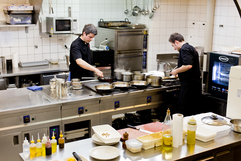 Das Restaurant liegt nur wenige Meter vom Seeufer entfernt. Restaurantparkplätze sucht man vergebens. Wir drehen deshalb noch einmal eine Runde durch die Strassen. Wir sind etwas spät dran. Normalerweise stellt das bei Schweizer Restaurants kein Problem dar, da die Tische nur einmal pro Abend vergeben werden. Doch wir haben uns heute bei Denis Martin für eine Demonstration in der Küche angemeldet. Für einen Aufpreis von 90 Franken pro Person, gewährt man den Gästen einen eineinhalbstündigen Einblick in die molekulare Welt.
