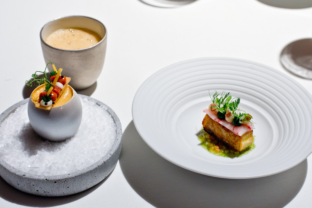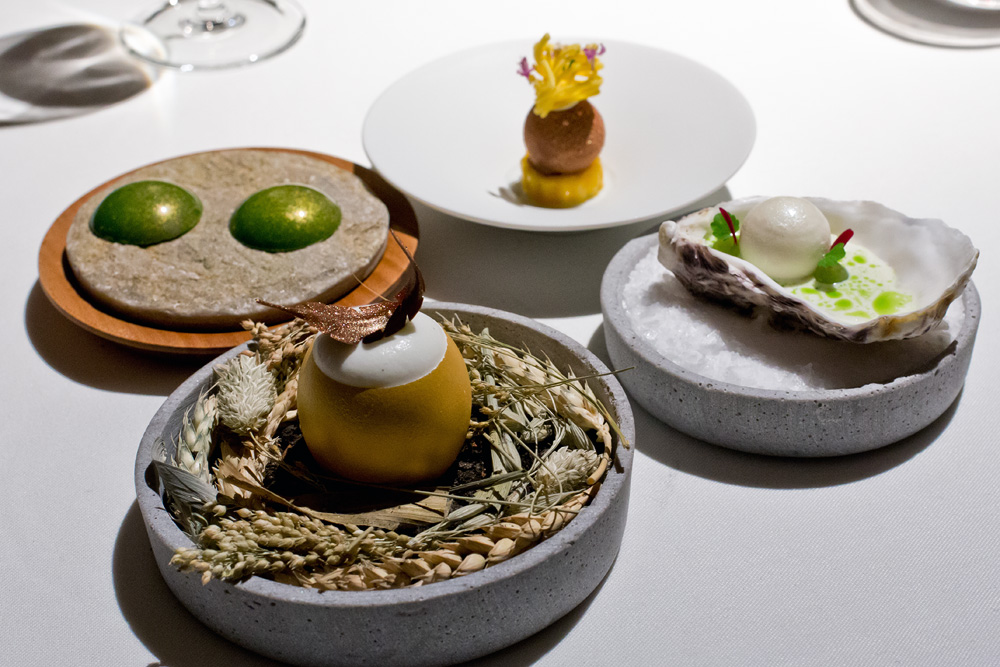 Wie schon in Vals, startet der Abend bei Sven Wassmer mit Fingerfood-Snacks, die in verschiedenen Wellen serviert werden. Los geht es mit …