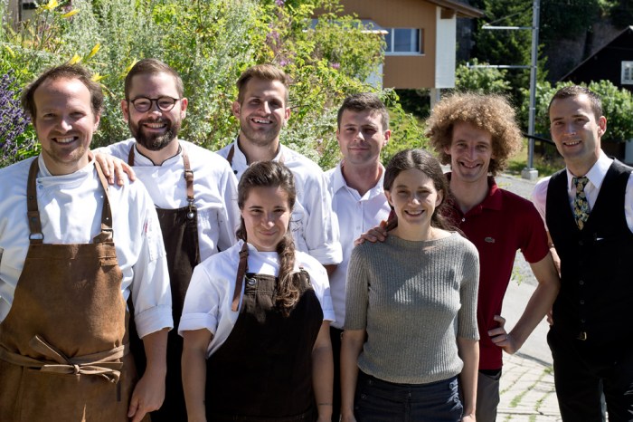 Weinbegleitung: Für die Weinbegleitung ist heute Abend der Hoteldirektor und diplomierter Sommelier Daniel Eisener persönlich zuständig. Er teilt die Aufgabe mit seinen beiden Mitarbeitenden Thomas Monsberger und Michaela Poliakov, welche ebenfalls diplomierte Sommeliers sind. Dabei können sie auf einen grossen und top sortierten Weinkeller zurückgreifen. Die Weinbegleitung hat keinen Fixpreis, sondern hängt von der jeweiligen Selektion ab. Die Tropfen richtet man hier mit viel Können und Bedacht auf die einzelnen Gerichte ab. Heute Abend wurde die Begleitung mit 65 Franken verrechnet: