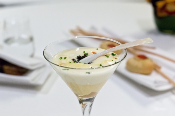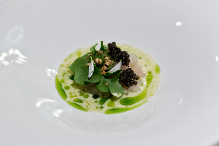 Das spezielle im La Miranda: Jeder Gang wird von einem anderen Mitarbeiter aus dem Team serviert. Die Apéro-Häppchen (8/10) präsentiert der Chef höchstpersönlich. Bernd Fabian stellt eine Petitesse nach der anderen auf den Tisch und zeigt gleich zu Beginn, dass seine Brigade keinen Aufwand scheut. Auch geschmacklich überzeugt alles. Die Highlights sind das Macaron mit Saibling sowie Apfel und etwas fermentiertem Knoblauch aber auch der tolle Kartoffelchip mit Tatar und würziger Belper-Knolle. Ebenfalls begeistert das filigrane Randen-Röllchen mit ungestopfter Gänseleber und Passionsfrucht. Einzig der Tempura ist etwas überdimensioniert wodurch der Kaviar aus dem österreichischen Salzburg sich geschmacklich nicht vollends entfalten kann.