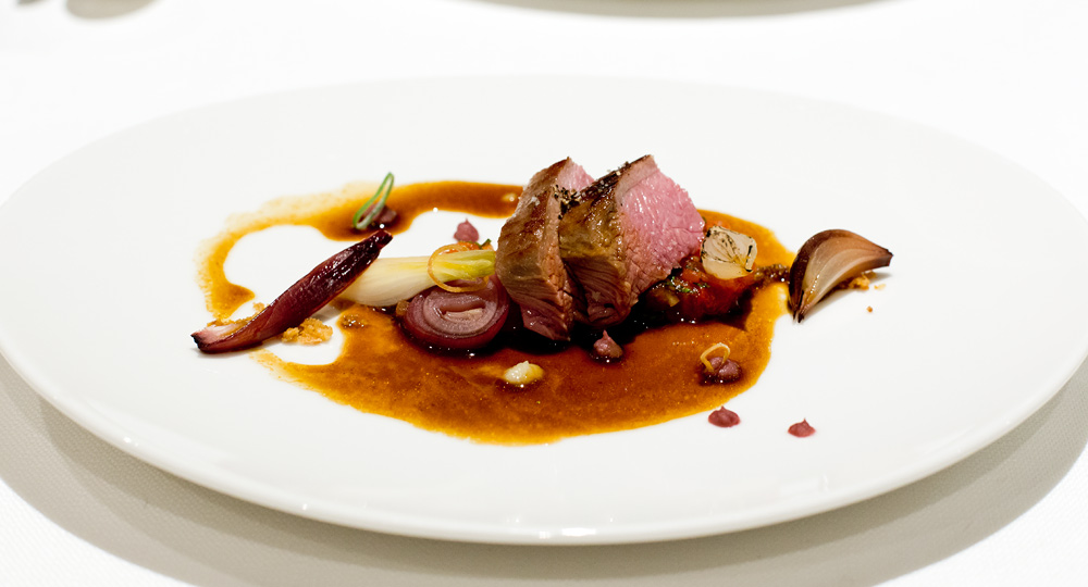 Während die Optik auf dem Teller – nachvollziehbarer Weise – etwas kläglich wirkt, macht das geschmackliche Ergebnis Spass. Der hochwertige Vogel ist perfekt gegart, entsprechend zart und wild im Geschmack. Auch die süssliche Sauce, mit dem leichten Rosmaringeschmack, überzeugt.
