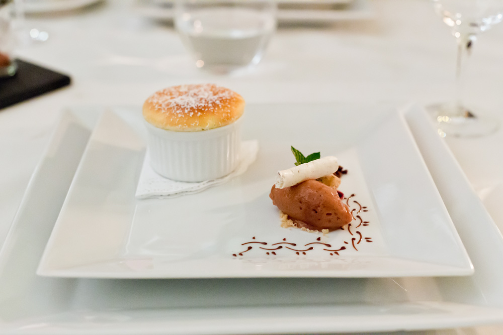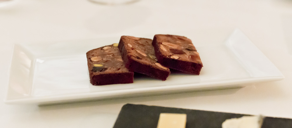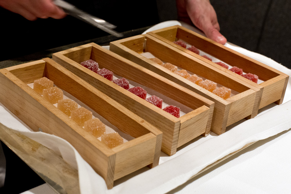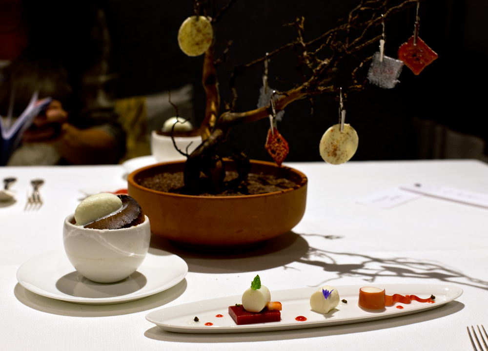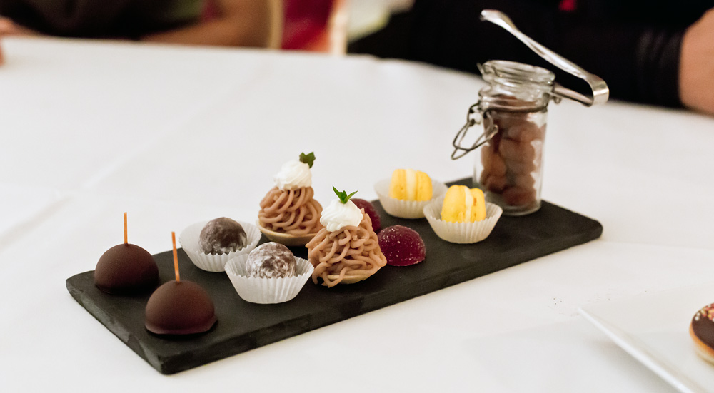 Langsam wird das Menü etwas gar stark in die Länge gezogen. Denn wie schon auf die bisherigen Gänge, warten wir auch jetzt jeweils zehn Minuten auf das nächste Dessert. Da diese aber immer kleiner werden, würde es in unseren Augen mehr Sinn machen, wenn man die Nascherien vereint auf einem Teller servieren würde.
