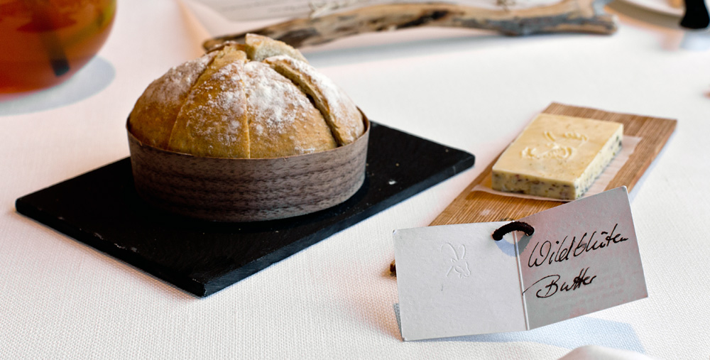 Martin demonstriert verschiedene Geräte, zeigt wie er die Essenz von x-beliebigen Nahrungsmitteln gewinnt, erklärt weshalb unsere Erinnerungen bestimmen was wir gerne essen und beweist, dass er in nur 15 Sekunden ein Gericht lediglich mit Hilfe der Mikrowelle zubereiten kann. Alles wirkt so überzeugend, gekonnt und sympathisch, dass er locker ein eigenes TV-Format füllen könnte. Nach kurzweiligen 90 Minuten (wäre da nur nicht das Hungergefühl), applaudieren die Gäste und lassen sich vom Chef zurück ins Restaurant bitten. Doch vorher offenbahrt er uns, weshalb auf jedem Tisch eine Muh-Dose steht. Er möge keine steifen Restaurants und setzte zur Aufklockerung seit ein paar Jahren auf dieses Gimmick.