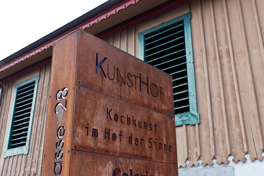 Das Restaurant liegt nur wenige Meter vom Seeufer entfernt. Restaurantparkplätze sucht man vergebens. Wir drehen deshalb noch einmal eine Runde durch die Strassen. Wir sind etwas spät dran. Normalerweise stellt das bei Schweizer Restaurants kein Problem dar, da die Tische nur einmal pro Abend vergeben werden. Doch wir haben uns heute bei Denis Martin für eine Demonstration in der Küche angemeldet. Für einen Aufpreis von 90 Franken pro Person, gewährt man den Gästen einen eineinhalbstündigen Einblick in die molekulare Welt.