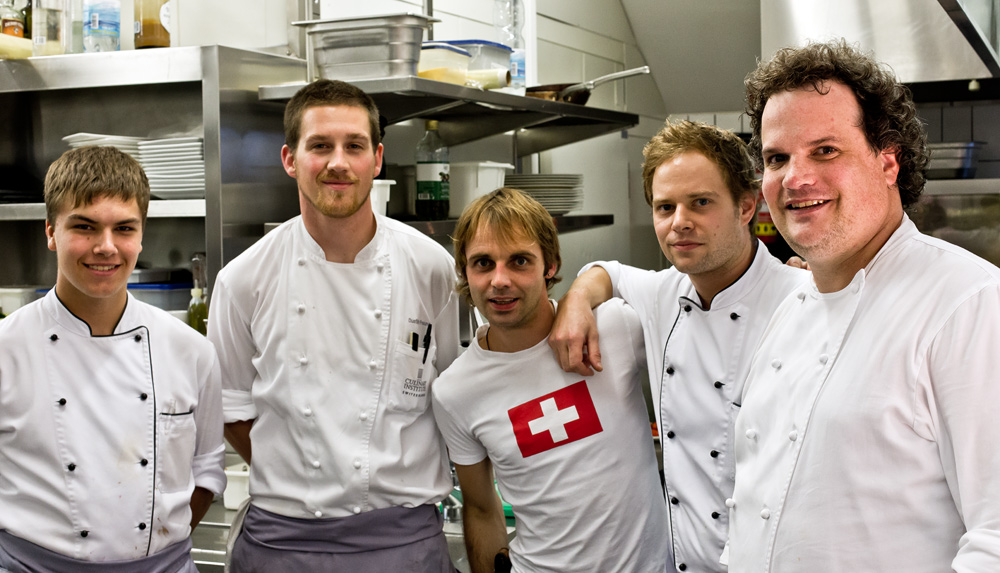 Dass Martin auch Geschmack auf den Teller bringen kann, hat er bei einzelnen Gerichten demonstriert. Die Foie Gras Kompositon war intelligent und geschmacklich sehr interessant. Auch die Taube und drei, vier andere Gerichte haben uns richtig gut gefallen. So sind wir überzeugt, dass er durch eine Reduktion seines Menüs viel mehr herausholen könnte. Davon hätten am Schluss alle mehr. Martin, weil er nicht mehr diese Flut an Teller schicken müsste (und dadurch auch die Optik näher an seine Internetbilder führen könnte), die Servicebrigade, die sich mehr Zeit für die Gäste nehmen könnte und am Ende die Gäste, die von besser ausbalancierten, auf den Geschmack fokussierten Gerichten sowie einem aufmerksameren Service profitieren würden.