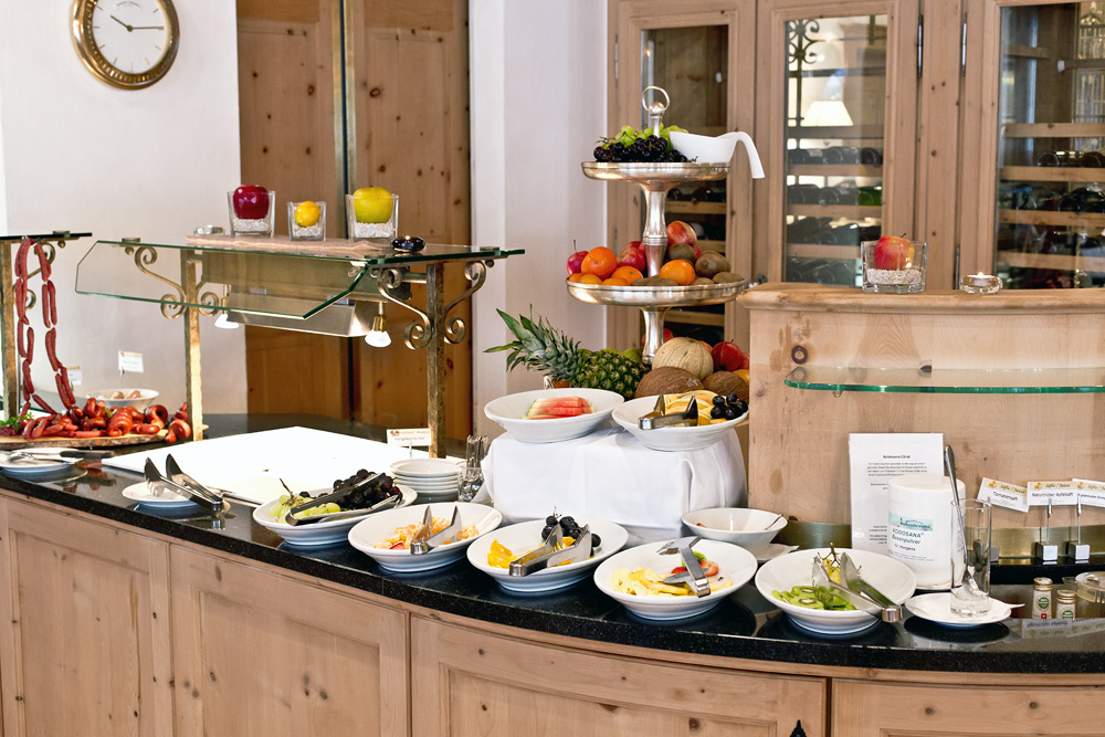Wer gerne Wein trinkt, hat besonders Glück, denn das Chasa Montana hat einen beeindruckenden Weinkeller mit über 1’400 (!) Positionen. Gleich drei diplomierte Sommeliers kümmern sich um den grossen Schatz im Kellergewölbe. Über viele Jahre hinweg hat man diesen sorgfältig aufgebaut und gepflegt, damit die Gäste zum Essen aus einer spannenden und fair kalkulierten Karte mit gut gereiften Erzeugnissen wählen können. Apropos Essen: die Kulinarik ist ein weiterer wichtiger Pfeiler im Haus. Neben einem umfangreichen Frühstücksbüffet gibt es für die Gäste am Mittag und Abend gleich vier Restaurants zur Auswahl: