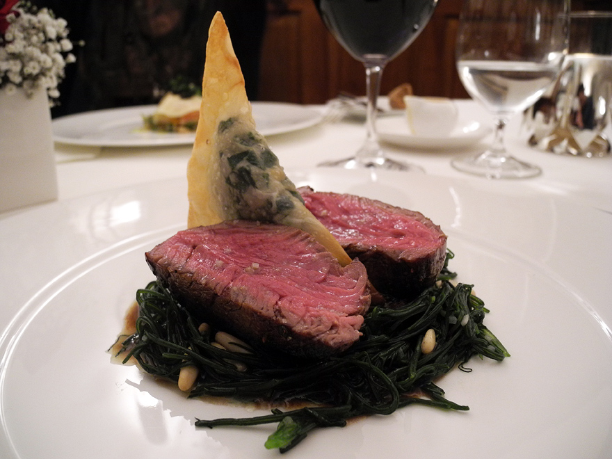 Der nächste Teller ist ein Stilbruch und wir wähnen uns bei irgendeinem Italiener. Doch schon der erste Biss offenbart, das ist kein 08/15 Pasta-Teller sondern etwas Besonderes. Da wären zum einen die hausgemachten Tagliatelle, die man so viel zu selten serviert bekommt. Die Kombination mit dem Ziegenfrischkäse und der feinen Artischocke gab ein stimmiges Geschmacksbild. Die charismatischen Steinpilze setzen dem Ganzen die Krone auf – diese sind leicht gebraten und dadurch sehr intensiv – ganz stark.